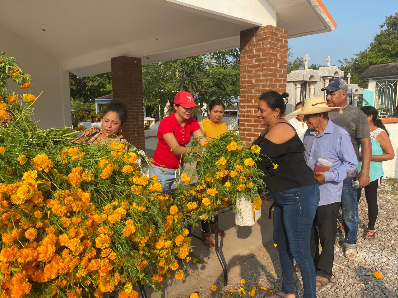 La licenciada Ma. Esbeydi Echeverría García, presidenta municipal, obsequió este sábado flores y veladoras en el panteón municipal, como parte de un apoyo directo a familias que acompañaron a sus seres queridos en el panteón municipal.