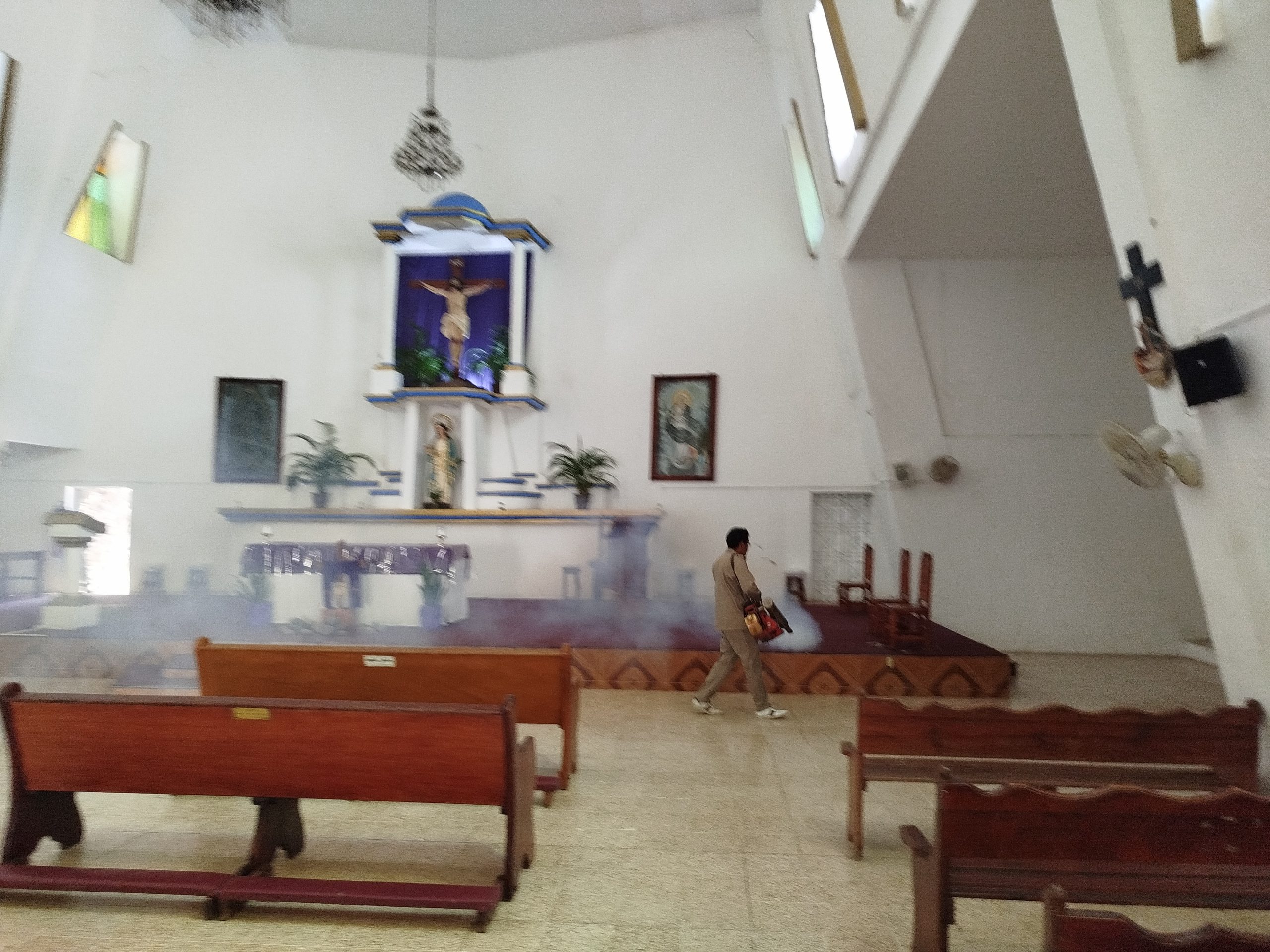 En refuerzo a la campaña de descacharrización que se realiza en la cabecera municipal y comunidades, el departamento de Vectores aplicó este miércoles una campaña de fumigación espacial para el control del zancudo trasmisor del Dengue.