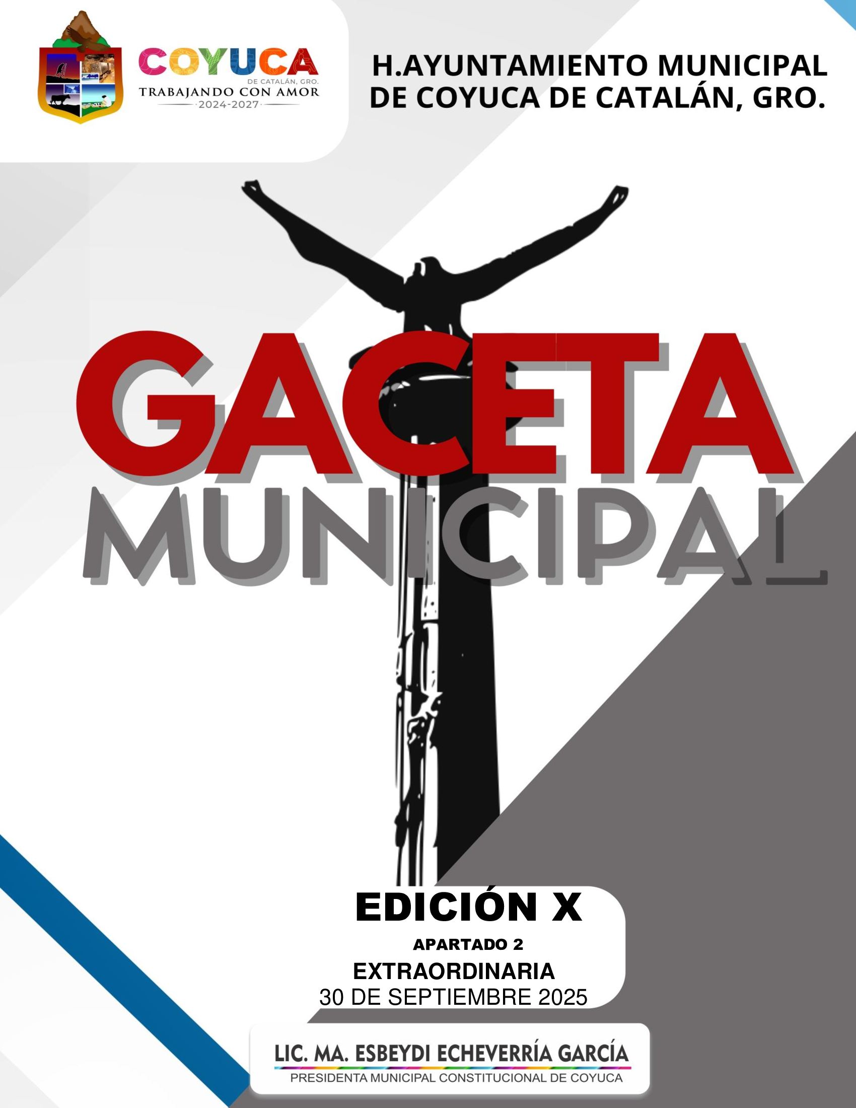 GACETA MUNICIPAL GACETA X APARTADO 2 30 septiembre, 202530 septiembre, 2025 Enlace de transparencia EXTRAORDINARIA Gaceta XDescarga
