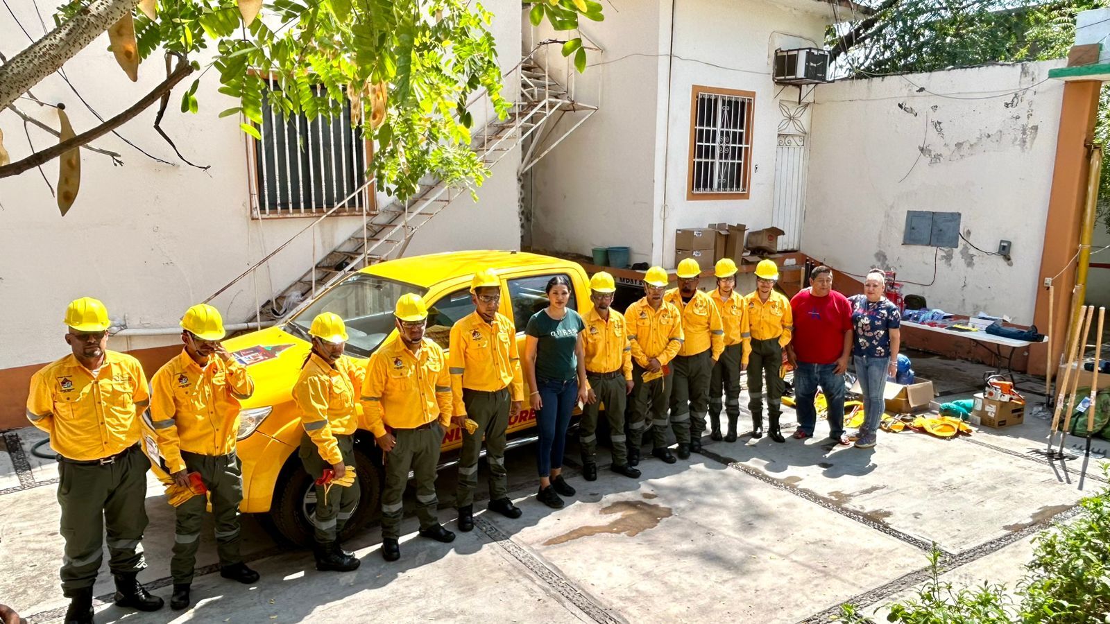 La presidenta municipal licenciada Esbeydi Echeverría García, puso en marche este lunes la unidad de combate contra incendios forestales que se logró equipar a un total de 10 brigadistas para desempeñar las acciones de combate de incendios forestales en el municipio de la mano con la Comisión Nacional Forestal (CONAFOR).