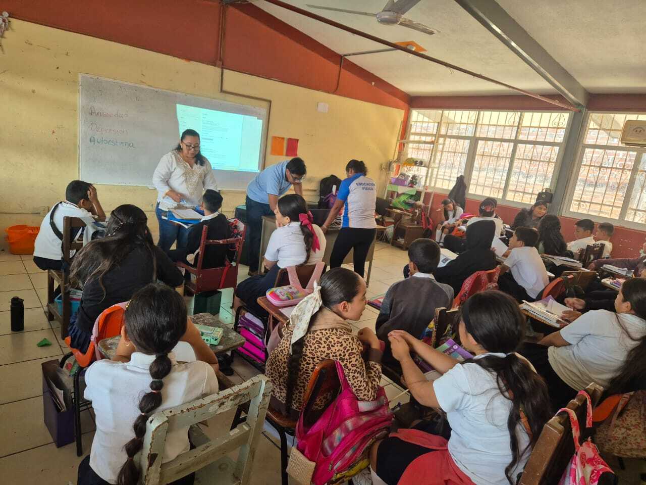 La directora de la Mujer, Marfelia Montufar Burgos, precisó que durante este taller que fue a solicitud de los directivos del plantel, se trató del tema de la ansiedad, depresión y autoestima, dirigido a los alumnos de sexto grado que van con miras a ingresar al nivel secundaria, donde sus emociones se incrementan.